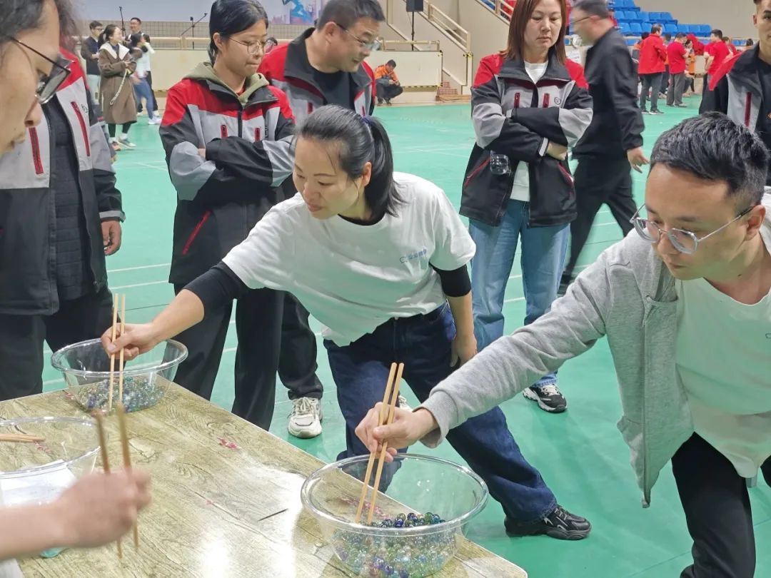 七种运动项目:弹珠快送(筷子夹珠)、纸杯速递(纸杯传递接力)、精准送达(投壶)、有“求”必应(羽毛球九宫格)、持续奋斗(跳绳接力)、一击必中(仿古高尔夫游戏)、众志成城(拔河)。