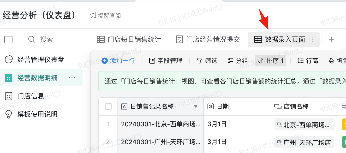 2)模板贴合业务,员工仅需直接修改数据 它将分散的数据流整合为一张张清晰、实时、可协同的数据表。 仅需点击右上角的“使用模板”,即可开始快速编辑。