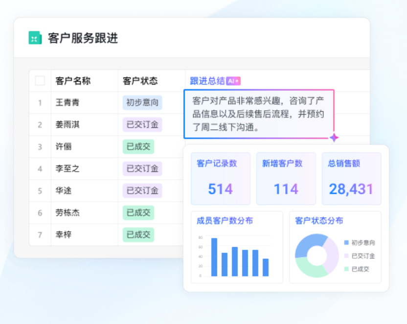 而现在,一张现成的智能表格,就能把客户需求、处理进度、责任人、时效节点等全部串起来,一人修改,全员同步。