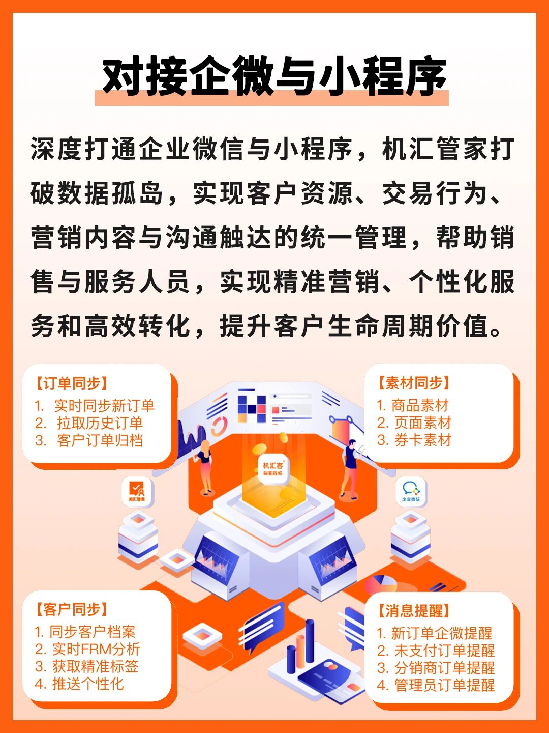 将小程序的每一笔交易转化为客户关系深化的契机。 1.实时同步新订单 在订单生成时,订单数据能推送至SCRM系统,销售或客服人员可了解客户新动态,对于大额订单、高频客户可进行关怀跟进,提升客户体验。 2.拉取历史订单 历史订单不是无用的数据,批量拉取历史订单数据,填充客户库,完成数据的初始化与补齐,它能帮助构建更完整的客户消费画像。 即使是在系统上线前的客户,其历史交易记录也能被用于分析和跟进,避免客户资产流失。